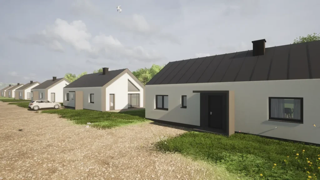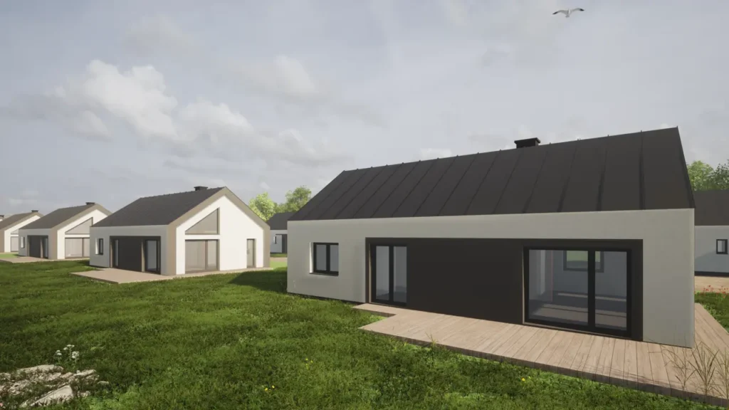 Korzystając ze sprawdzonego, funkcjonalnego i nowoczesnego projektu. Realizujemy budowy domów do stanu deweloperskiego — zarówno na naszych działkach, jak i na działkach klientów.